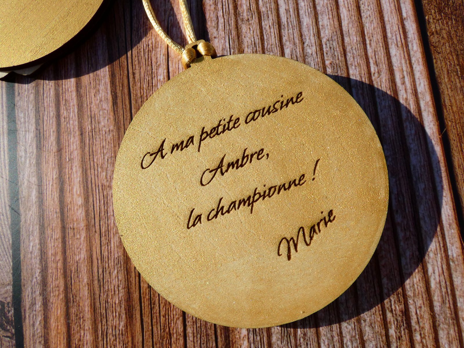 – Vous pouvez aussi ajouter l’option « gravure au dos » pour un cadeau encore plus exceptionnel : Je graverai le message personnel que vous me donnerez, qui s’adresse à la personne qui recevra la boule en cadeau, lui indiquant qui le lui a offert. Par exemple : « A mon filleul, ta marraine qui t’aime », ou « Amon papa d’amour, ta petite Sophie » (+4€). Le message ne doit pas être trop long pour rester lisible.