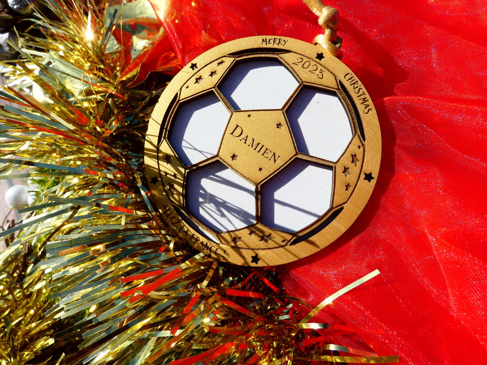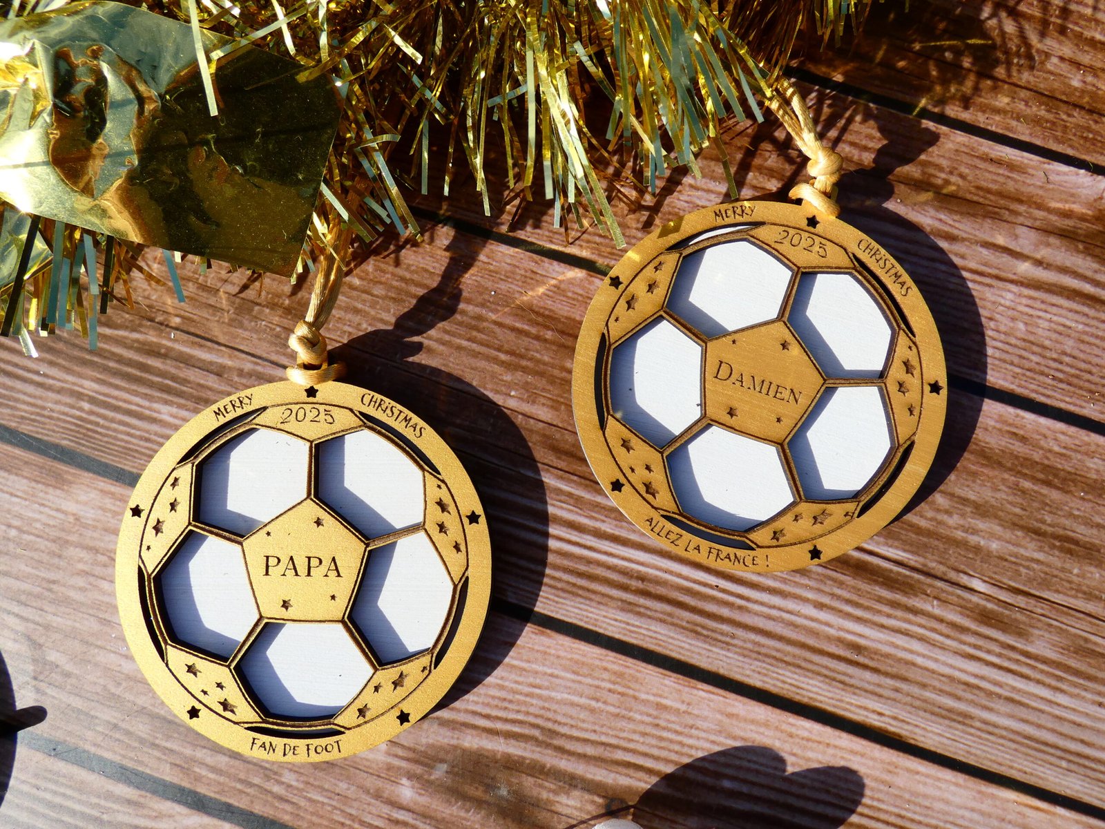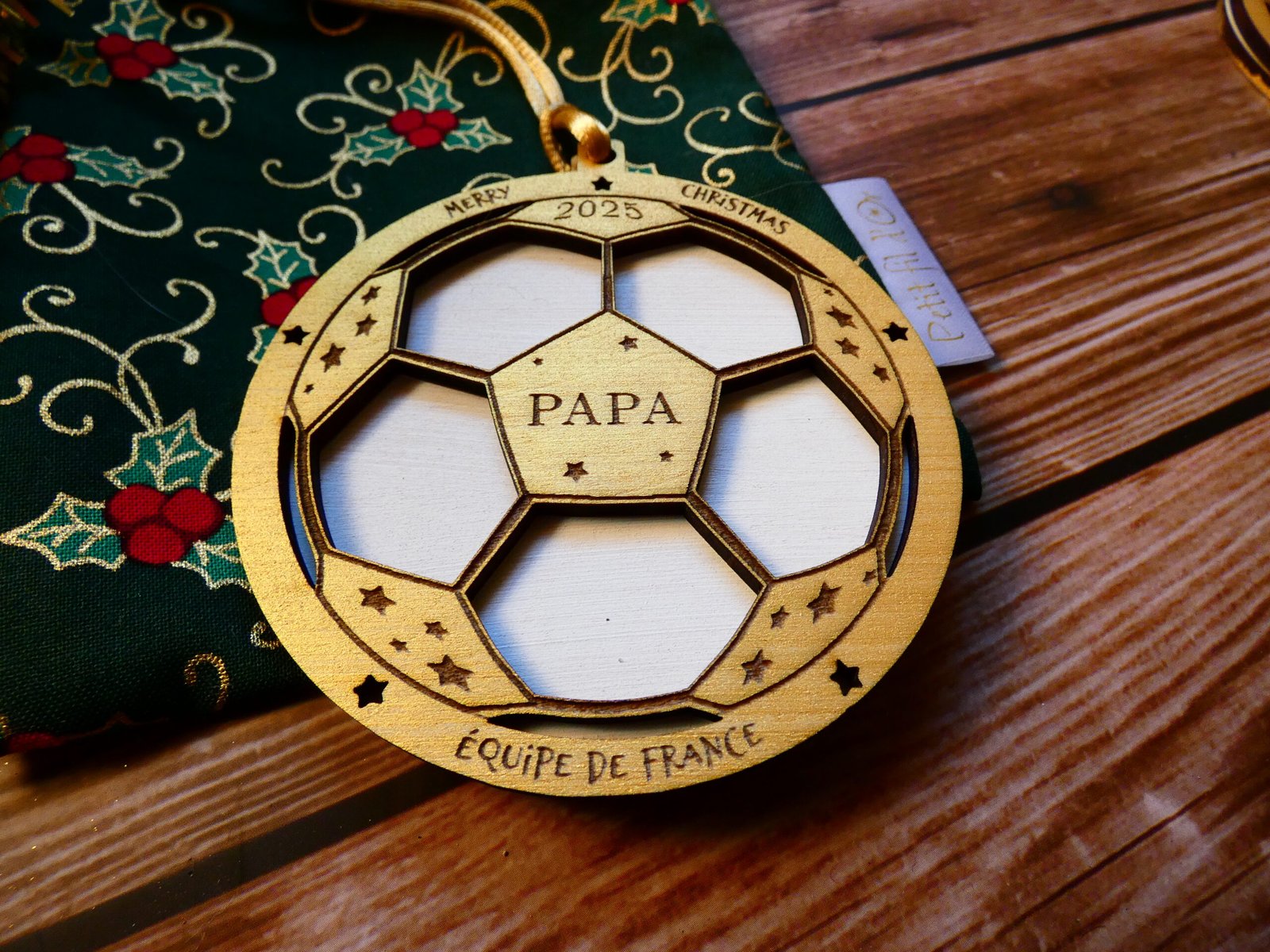 La boule de Noël en bois pour les fans de foot ! Personnalisable à souhait !