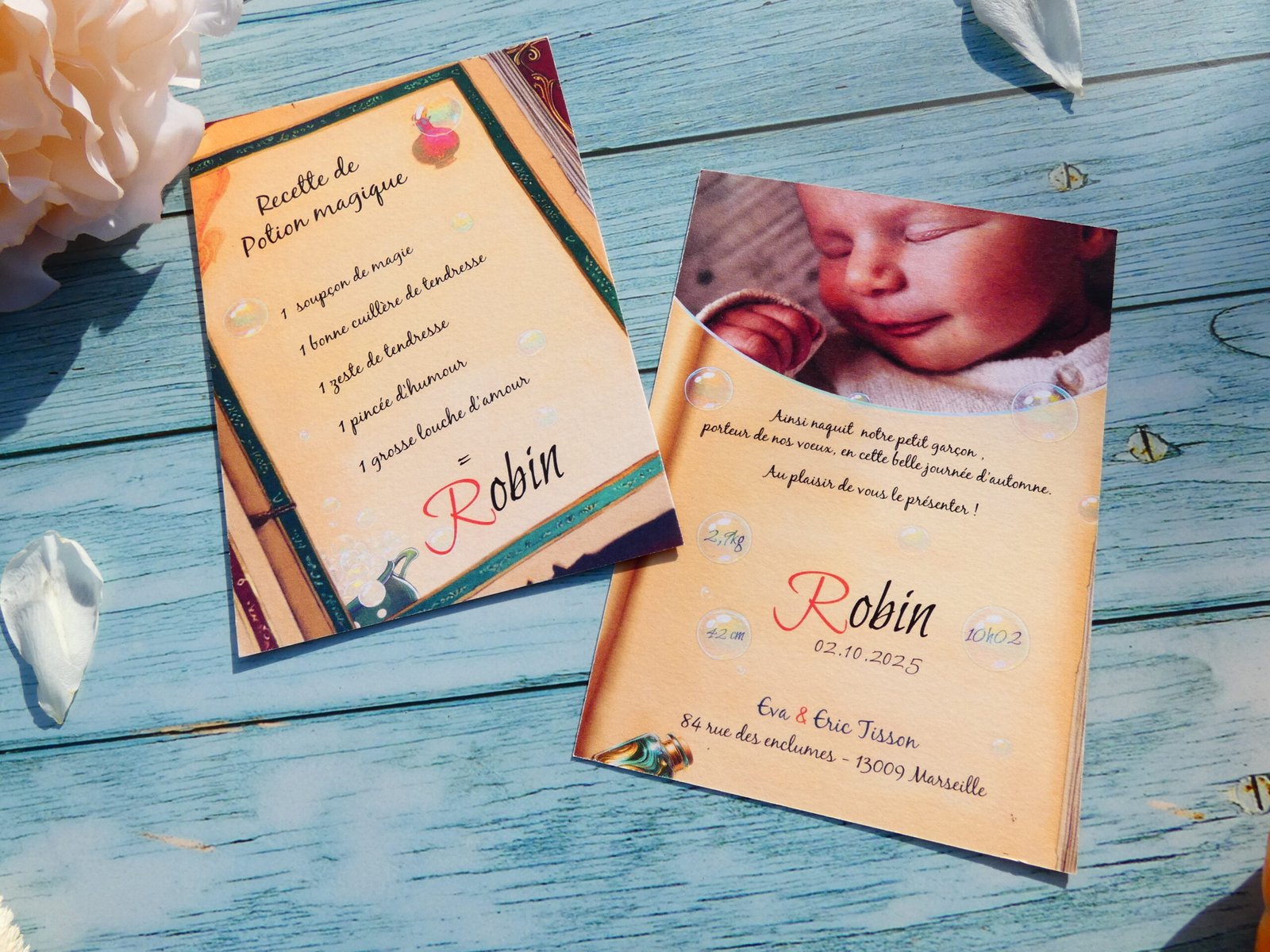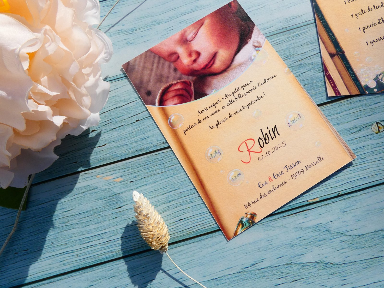 Ancienne infographiste 3D, ces faire-part sont entièrement réalisés par mes soins, en les choisissant vous vous garantissez un travail de qualité réalisé en France, par une auto-entrepreneuse passionnée.