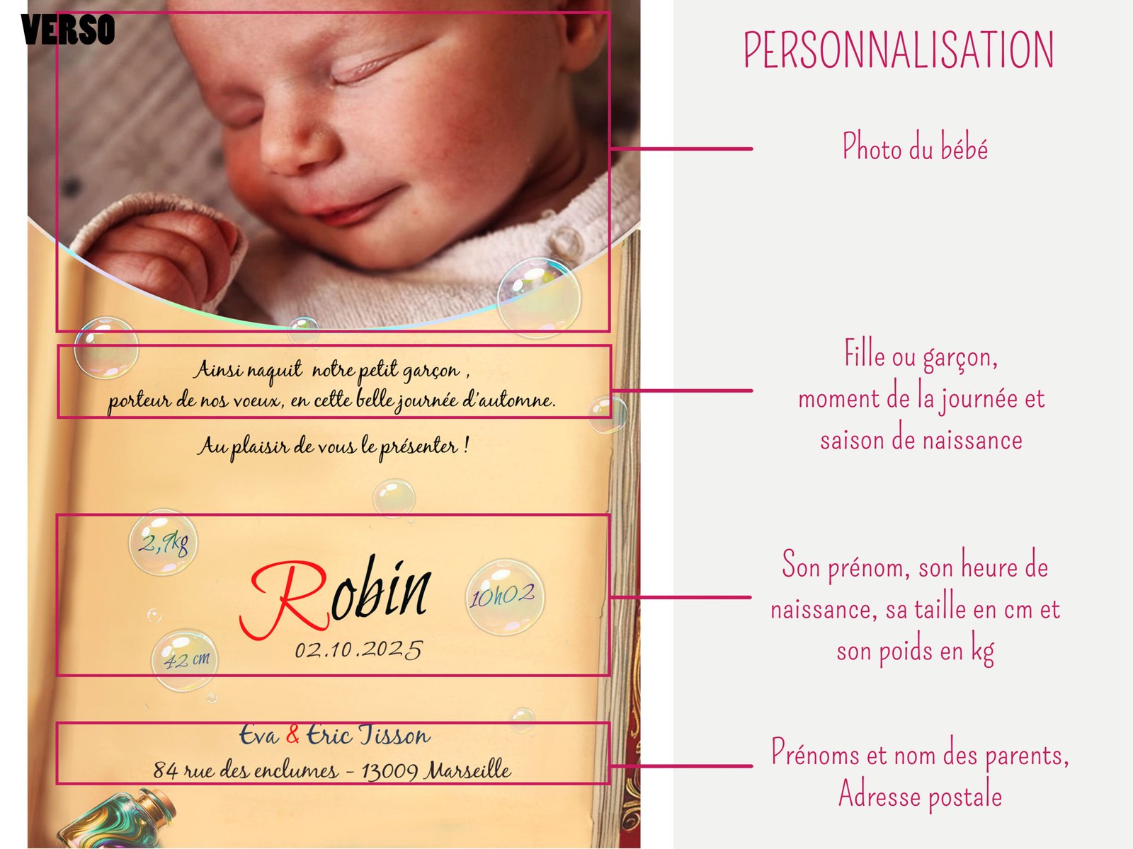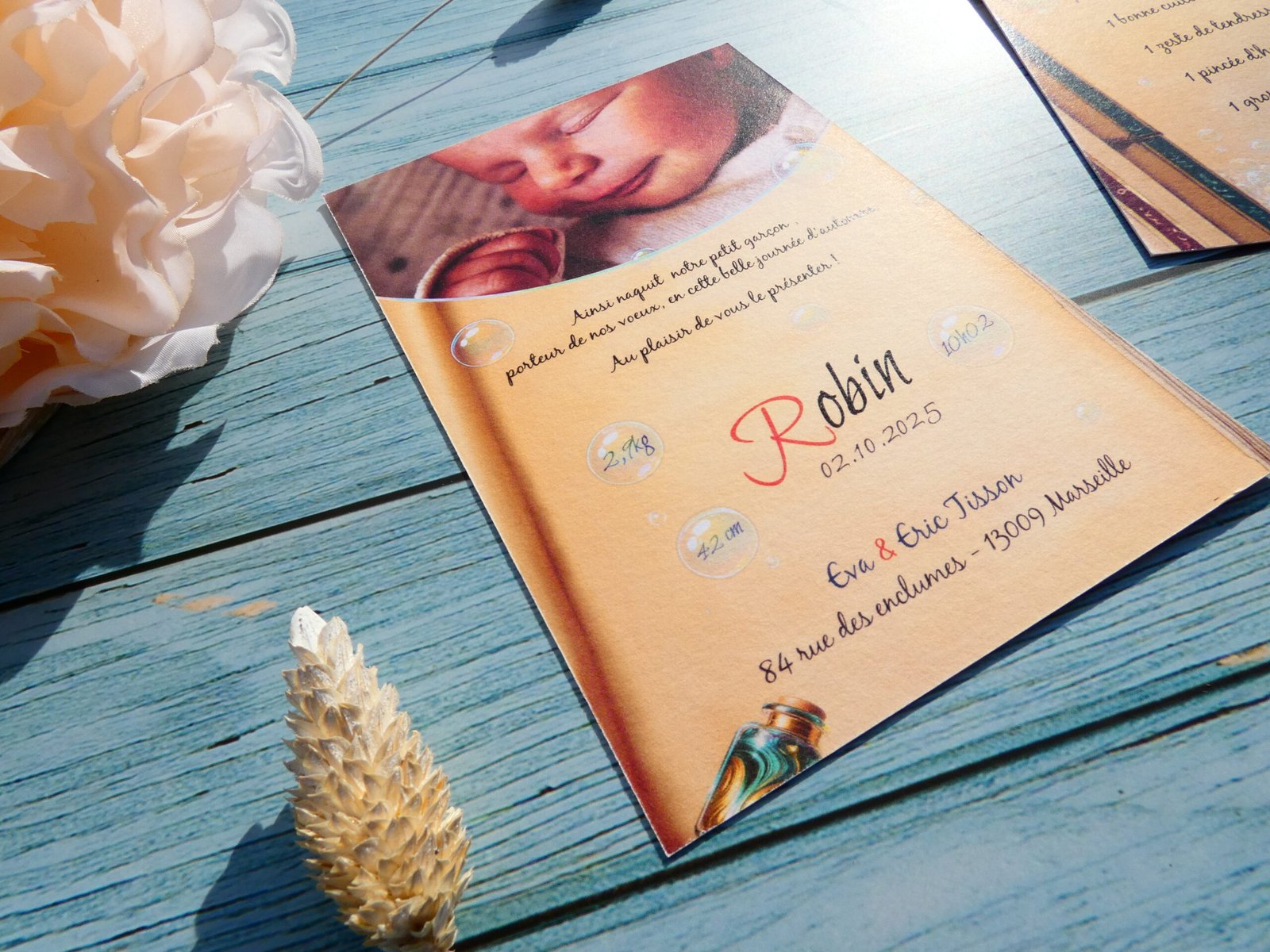 Découvrez ce beau faire-part de naissance original et mixte, fille ou garçon, parfait pour annoncer l’arrivée de bébé !
