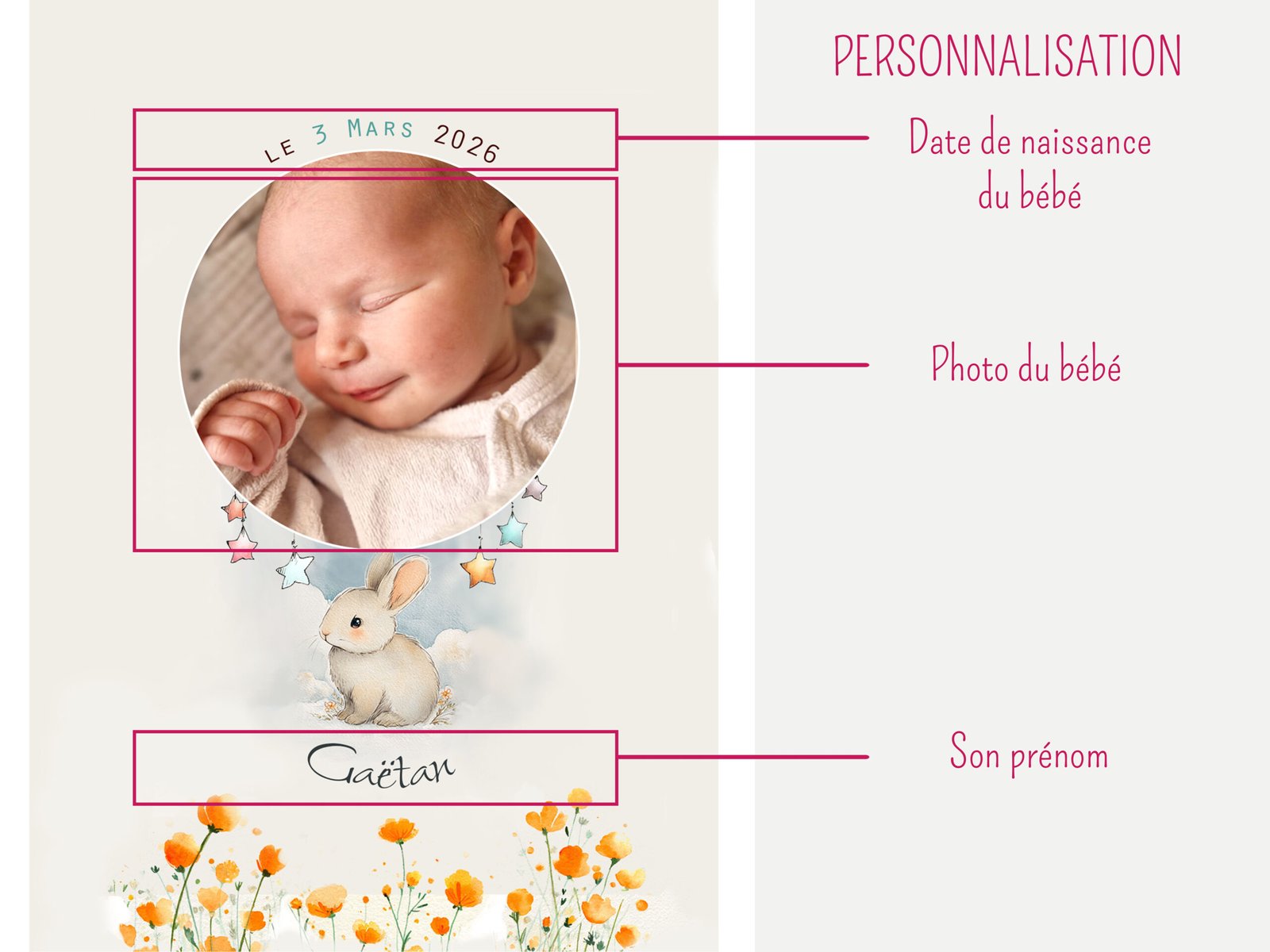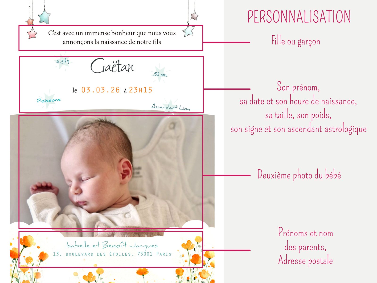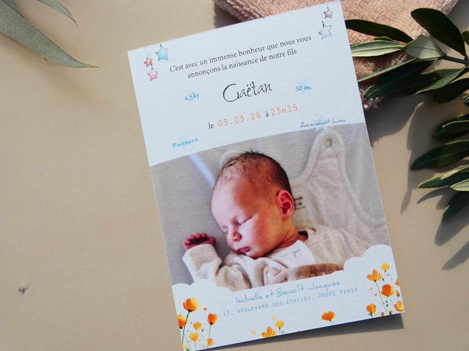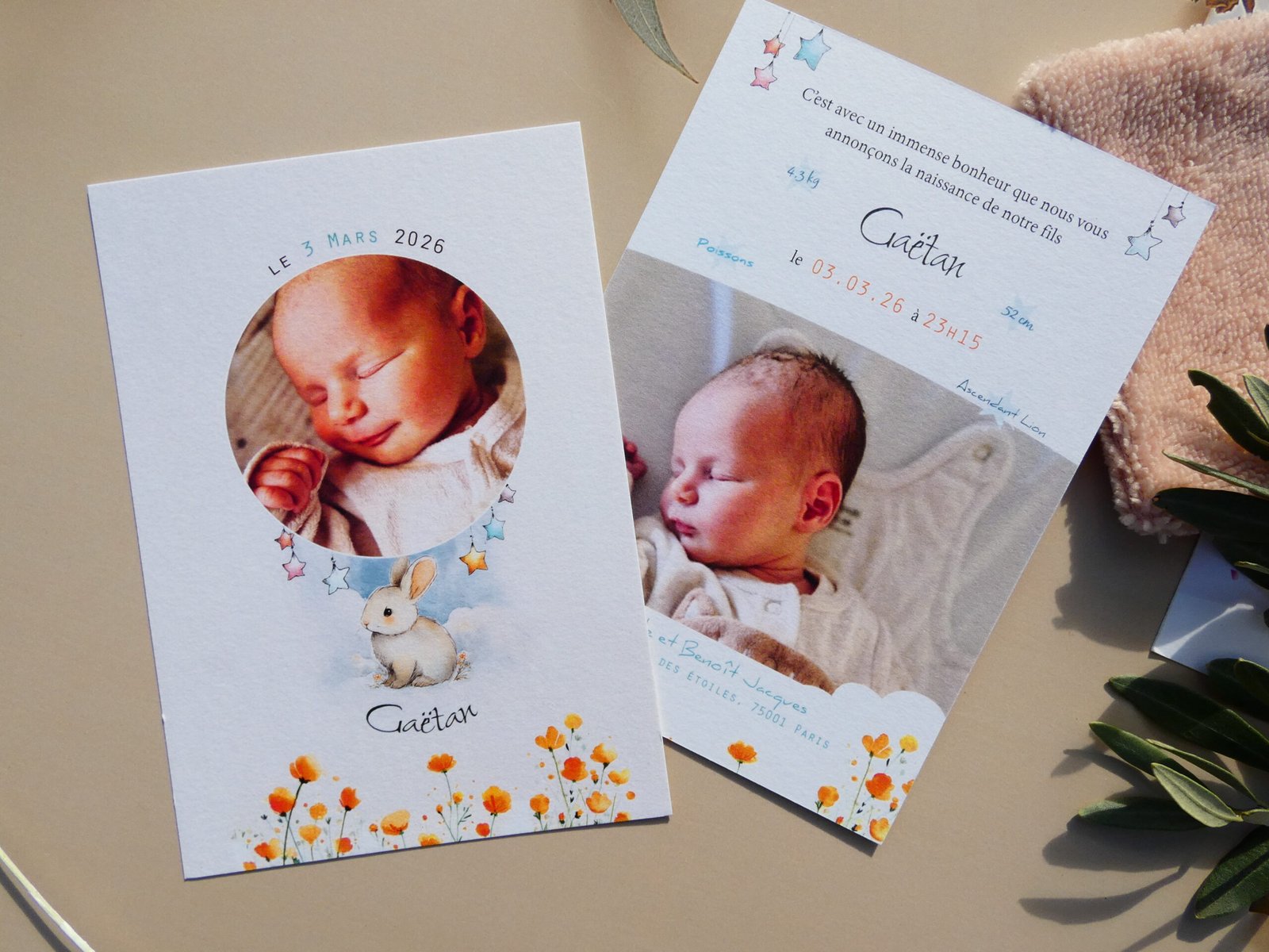 Découvrez ce beau faire-part de naissance original et mixte, fille ou garçon, parfait pour annoncer l’arrivée de bébé !