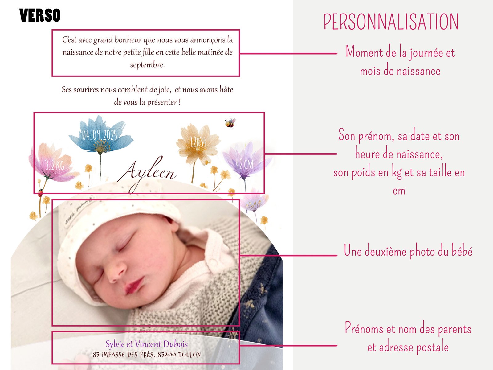 – le prénom du bébé et sa date de naissance