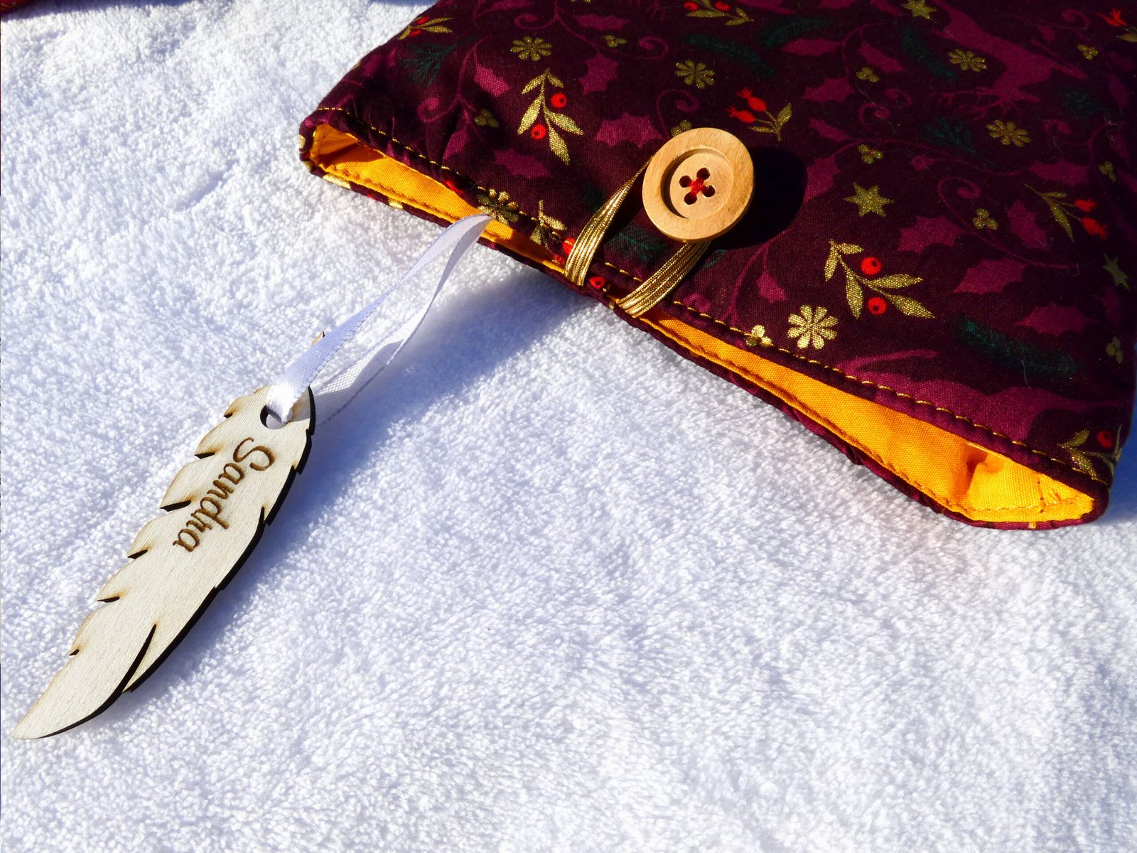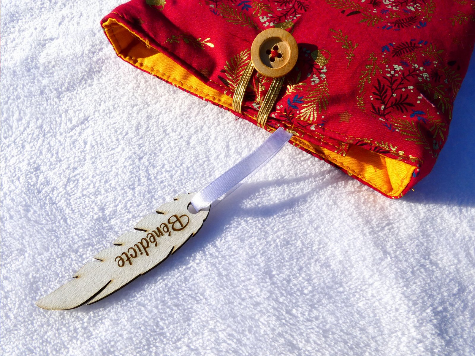 Vous pourrez alors indiquer le prénom ou titre (maman, mamie, marraine, « je t’aime »…) à graver sur la décoration en bois du marque-page en tissu. Pratique, personnalisé et élégant, il sera un cadeau parfait pour un de vos proches passionné de lecture ou pour vous-même.