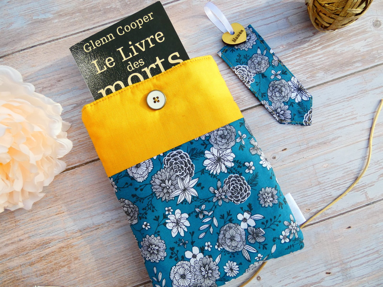 Vous pouvez ajouter un marque-page en tissu assorti à votre protège-livre de poche préféré en sélectionnant l’option « Avec » dans le formulaire.