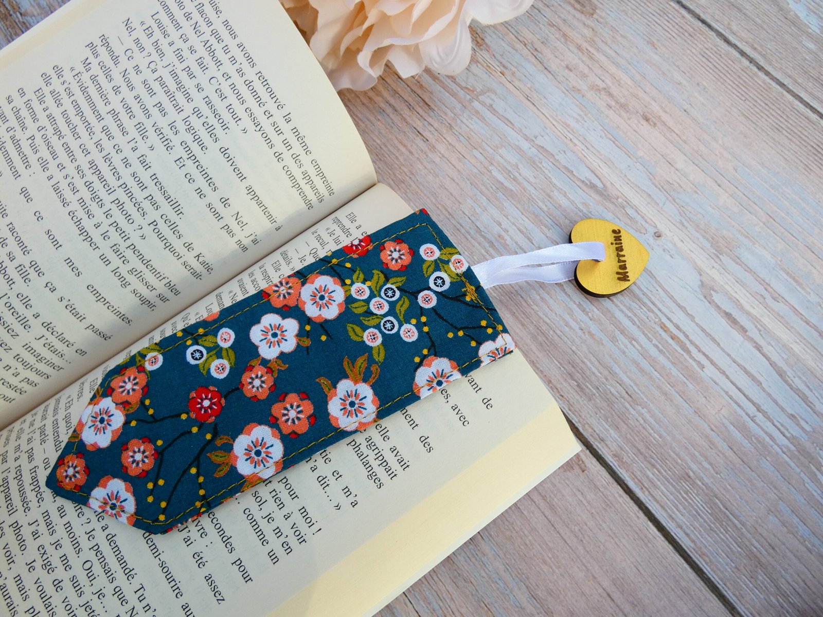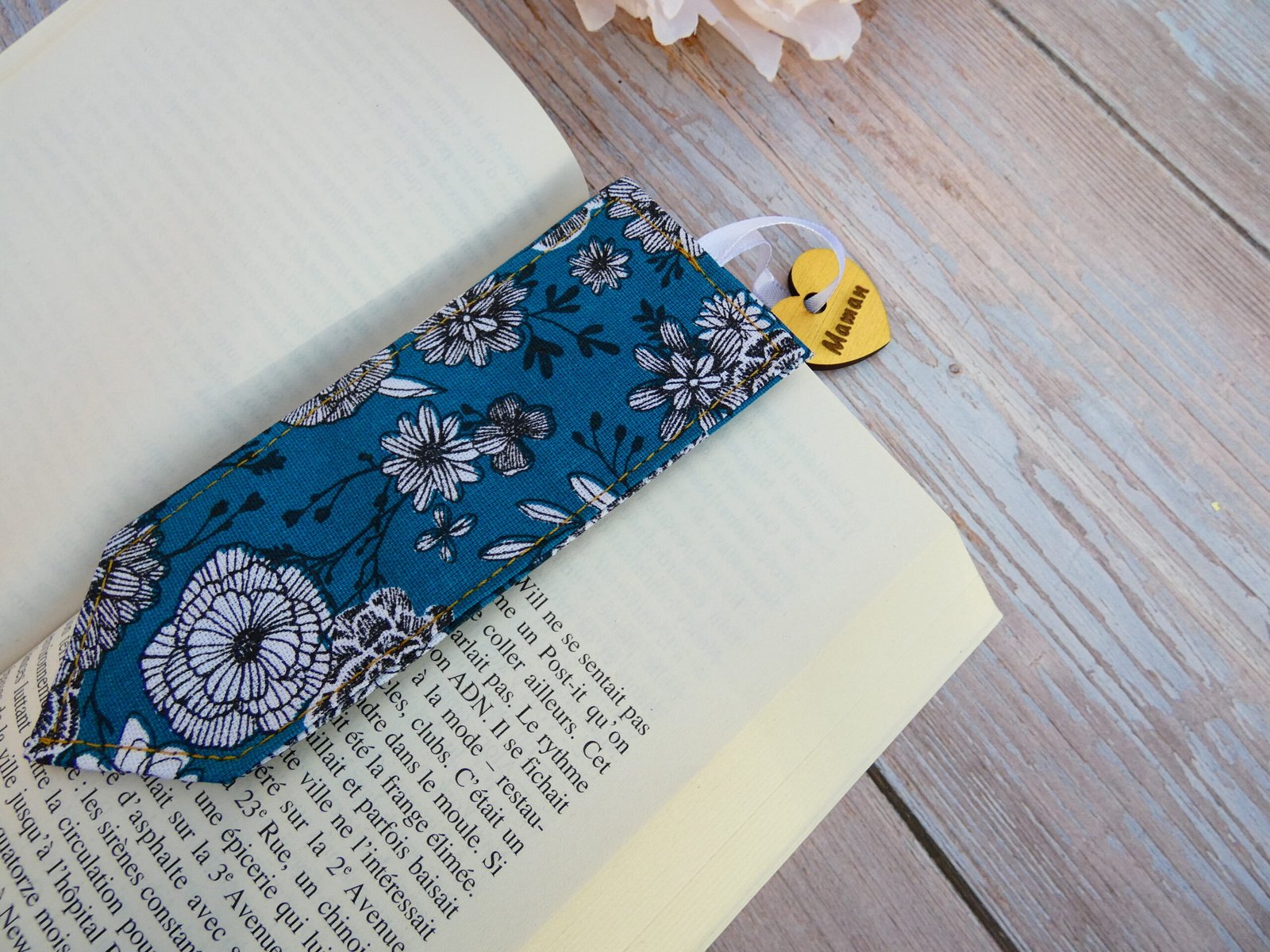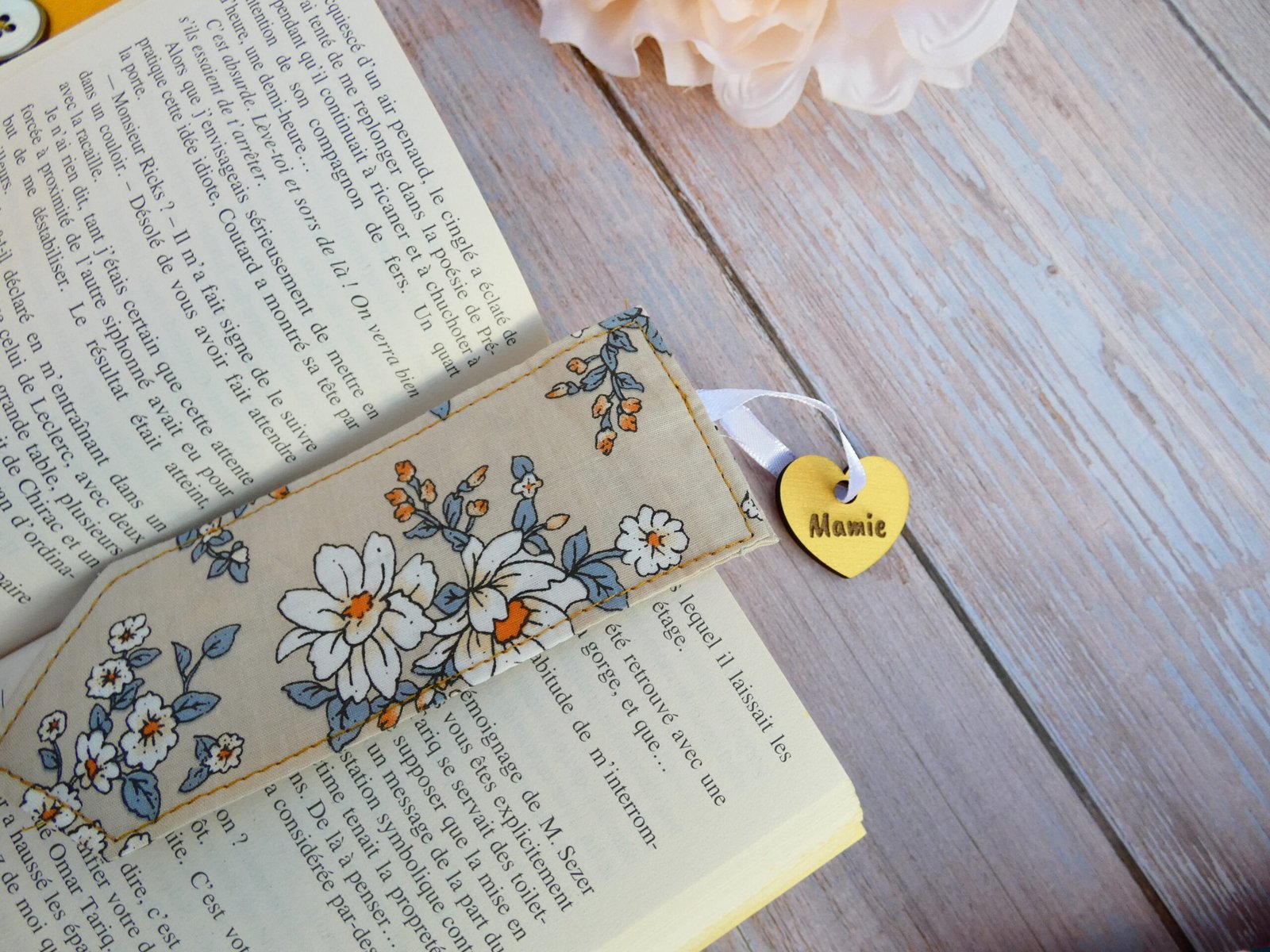 Vous pourrez alors indiquer le prénom ou titre (maman, mamie, marraine, « je t’aime »…) à graver sur la décoration en bois du marque-page en tissu. Pratique, personnalisé et élégant, il sera un cadeau parfait pour un de vos proches passionné de lecture ou pour vous-même.